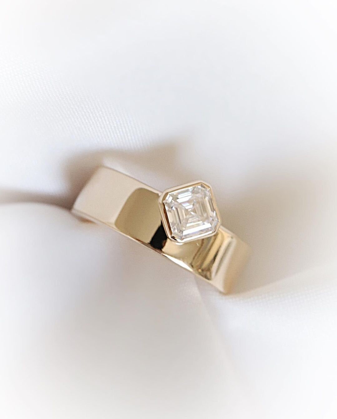 Chunky Gold Engagement Ring Round Moissanite Wide Band Ring Etsy Thick Band Engagement Ring Engagement Rings Round Gold Wide Band Rings