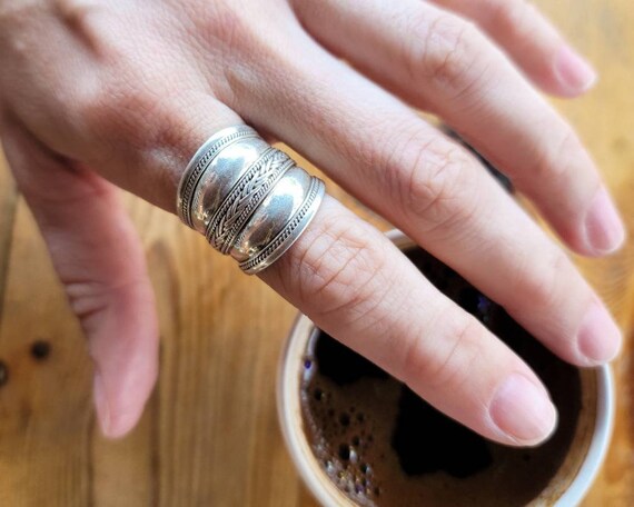 Boho Thick Band Ring For Women Sterling Silver Chunky Ring Etsy